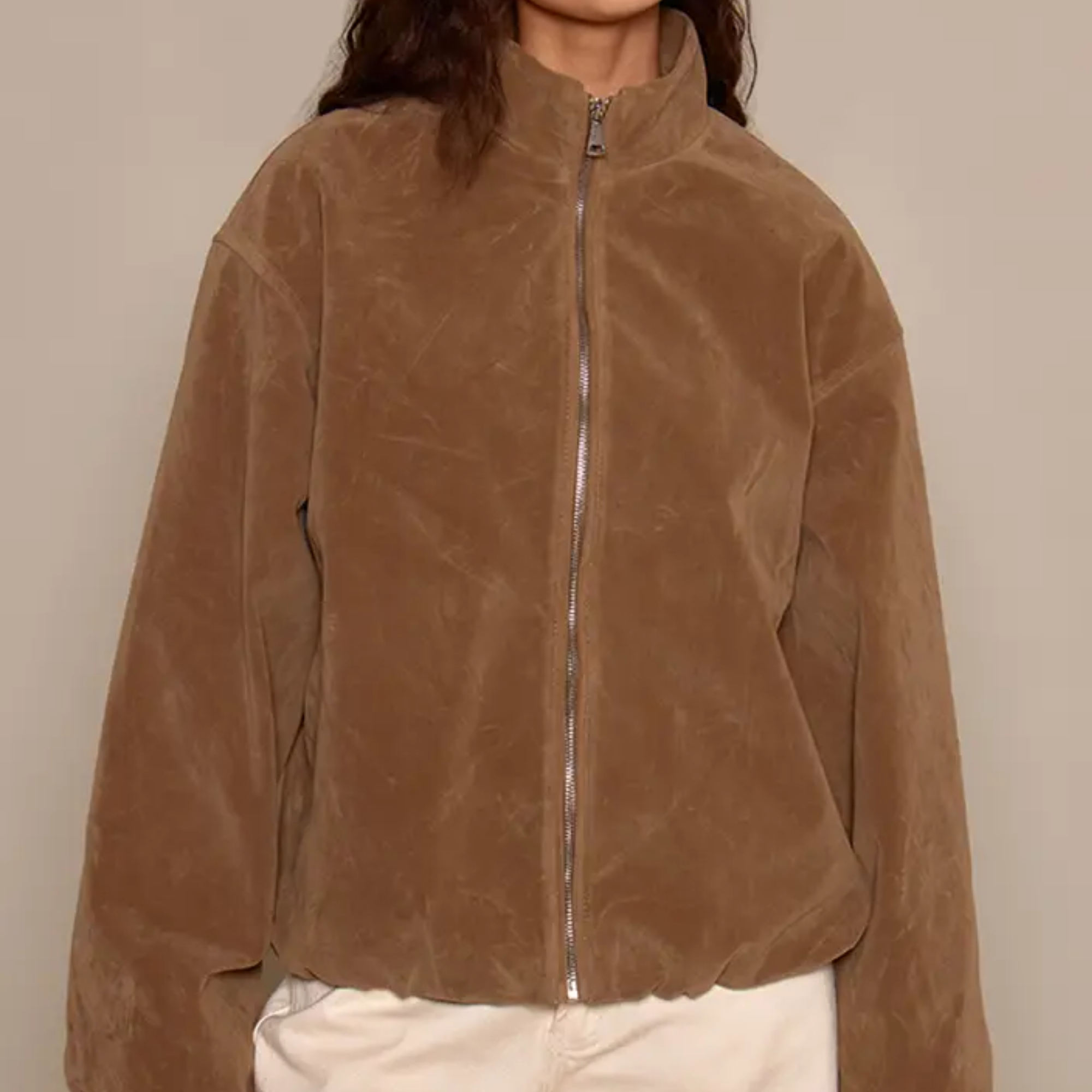 A refined suede jacket designed with clean lines and a soft, structured finish. Crafted in a warm neutral tone, this piece offers a timeless silhouette that layers effortlessly over everyday looks. Designed for versatility, it transitions seamlessly from casual to elevated styling, making it a staple in a considered wardrobe.